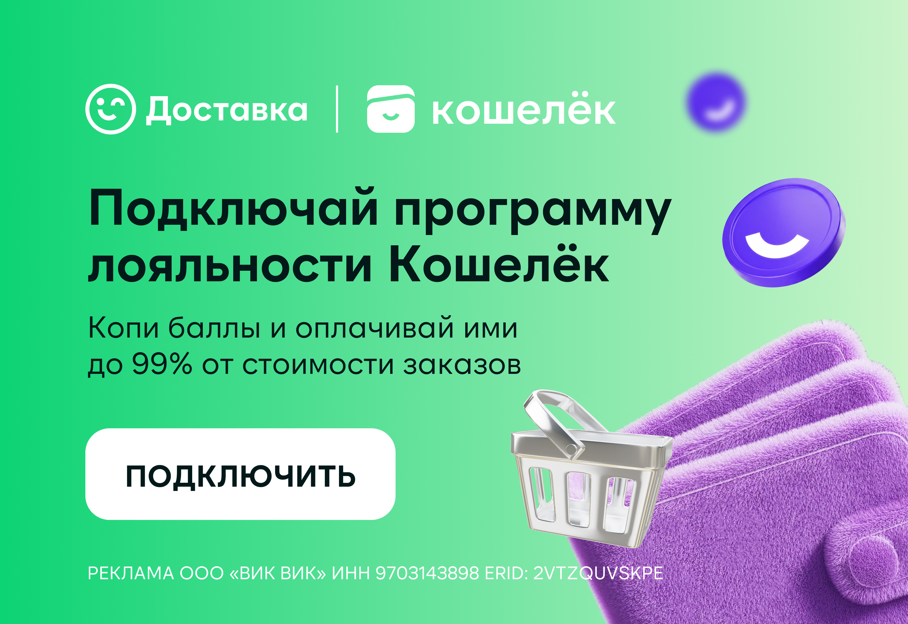 Авторизуйся в Доставке и активируй Кошелек, чтобы получать баллы за заказы и оплачивать ими продукты, мобильную связь, путешествия
